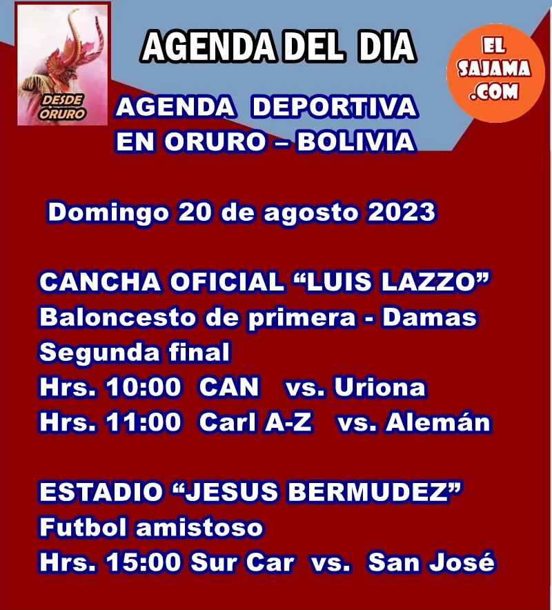 AGENDA DEL DIA - ElSajama.com Prensa | Noticias de Oruro, Deportes, Cultura, Sociedad y más